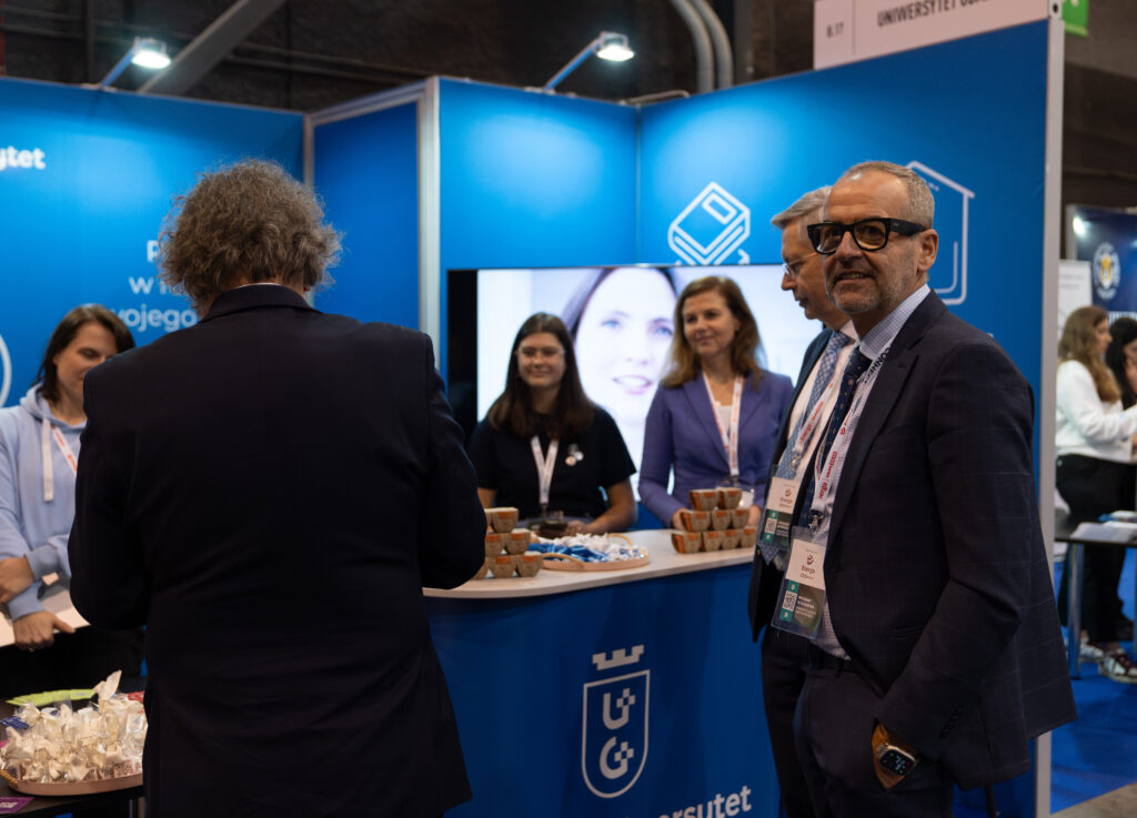 Na stoisku uczelni obecni byli Prorektor ds Rozwoju i Finansów – dr hab. Paweł Antonowicz, prof. UG., oraz naukowcy z Wydziału Matematyki, Fizyki i Informatyki, a także Biologii, Chemii oraz Ekonomii. Dr Jakub Neumann, dyrektor Interdyscyplinarnego Laboratorium Zastosowań Sztucznej Inteligencji w Uniwersytecie Gdańskim, opowiedział o roli sztucznej inteligencji jako jednego z kluczowych kierunków rozwoju współczesnej nauki i innowacji. Uniwersytet reprezentowali również przedstawiciele Biura Projektów Strategicznych UG, Centrum Szkoleń i Kursów,