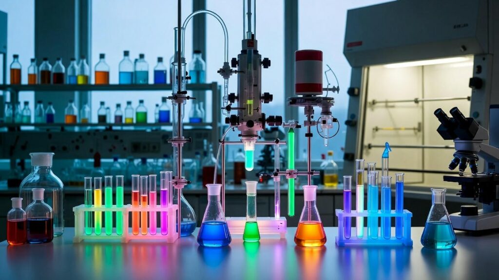 Zastosowane podstawniki w pozycjach orto- oraz modyfikacje łącznika między fragmentem donorowym i akceptorowym umożliwiają poprawę parametrów TADF w pełnym zakresie barw od niebieskiej do bliskiej podczerwieni. Kompozycje zawierające opracowane emitery mogą dodatkowo współpracować z wąskopasmowymi fluoroforami, zapewniając czystą barwę emisji i wysoką stabilność materiału.